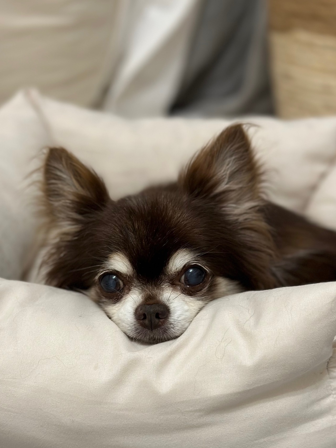 旅立ちの日はとても穏やかで、「ふふ、かわいいね。安心だね」と声をかける私の目を見つめながら、幸せな時間の中でリルは旅立ちました。